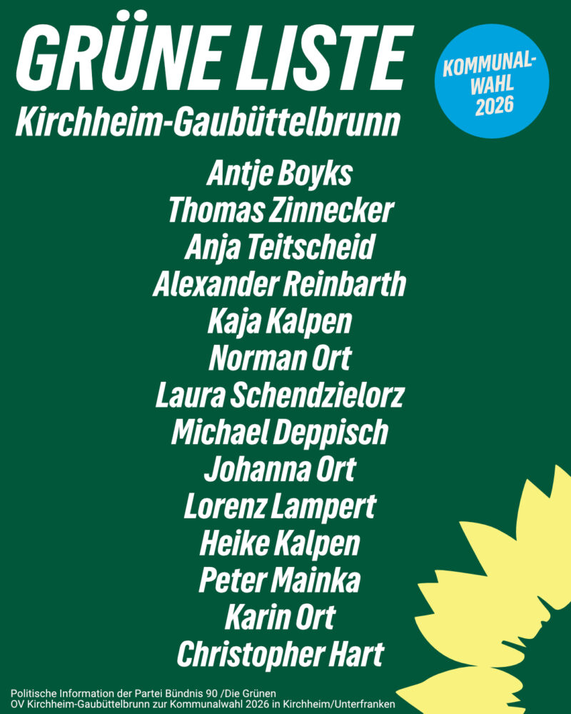 Am Sonntag wählten die Mitglieder des Ortsverbands von Bündnis 90/ Die Grünen in Kirchheim/Gaubüttelbrunn die Liste Kommunalwahl 2026.